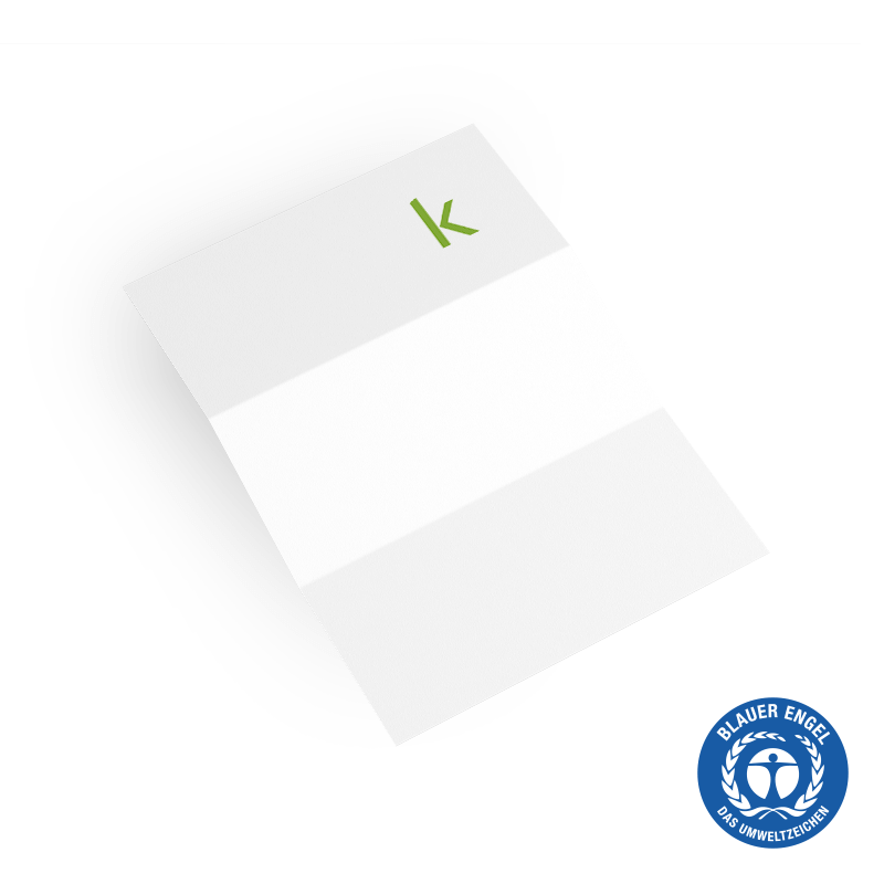 Unsere Briefbogen im DIN A4-Format sind in 4/0-farbig und in weiß erhältlich. Dieses zertifizierte Produkt nach Blauer Engel für Druckerzeugnisse (RAL-UZ 195) ist Ideal für den täglichen Bürobedarf und das professionelle Schreiben von Dokumenten und Geschäftsbriefen.