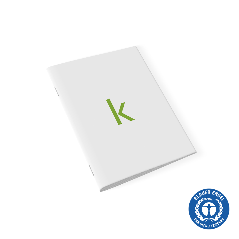 Entdecken Sie die nachhaltige Option für Ihre Broschüren mit unserer 8-seitigen Broschüre im DIN A5-Format. Dieses zertifizierte Produkt nach Blauer Engel für Druckerzeugnisse (DE-UZ 195) auf 160 g/m² hochweiß, ungestrichenem Recyclingpapier und mit Rückendrahtheftung gebunden, wird ressourcenschonend und umweltfreundlich hergestellt, emissionsarm gedruckt und ist die perfekte Wahl für umweltbewusste Kunden und Unternehmen.