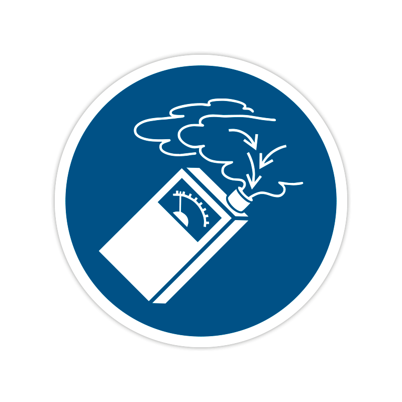 Gebotszeichen M048 "Gasdetektor benutzen" als Aufkleber oder Schild gemäß Sicherheits- und Gesundheitsschutzkennzeichnung ASR A1.3 nach DIN EN ISO 7010.