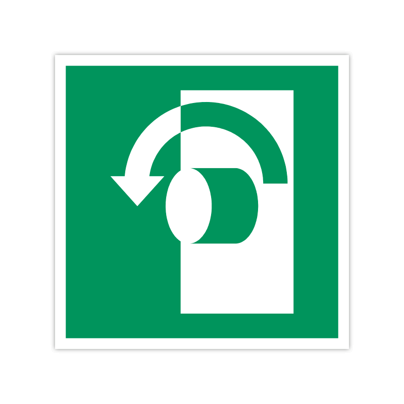 Rettungszeichen E018 Öffnen gegen den Uhrzeigersinn