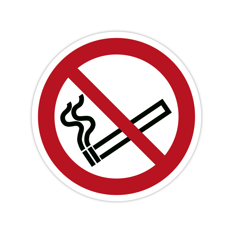 Verbotszeichen P002 "Rauchen verboten" als Aufkleber oder Schild gemäß Sicherheits- und Gesundheitsschutzkennzeichnung ASR A1.3 nach DIN EN ISO 7010.