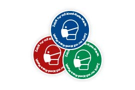 Bodenaufkleber, rund: Zutritt nur mit Mund-Nase-Maske.