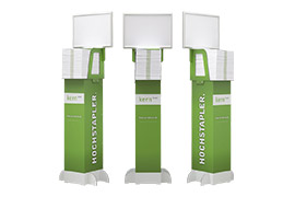 Präsentieren Sie Ihre Folder, Prospekte, Magazine oder Kataloge im Format DIN A4 mit einem professionell gebrandeten Displaysystem direkt am Point of Sale (POS). Animieren Sie Kunden und Gäste zur Mitnahme von Werbemitteln, Informationsmaterialien oder Schulungsunterlagen.